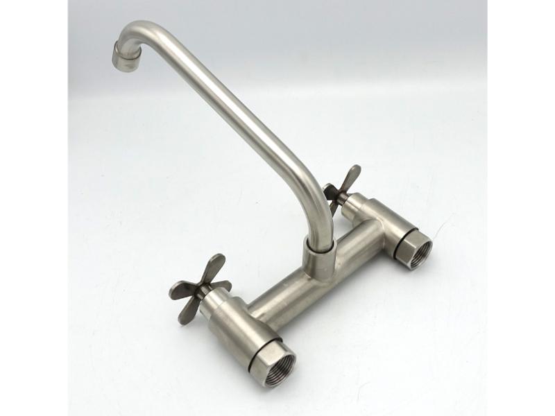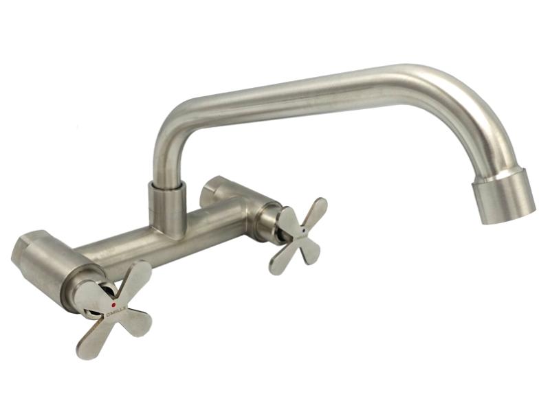 Змішувач для кухонної мийки MILLZ настінний буксовий ручки-хрестики MRS-SS-X-0003 нержавіючий 1/10