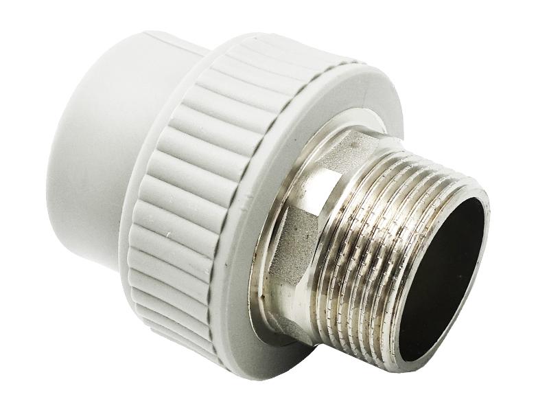 Муфта комбінована з зовнішньою різьбою під ключ PPR Ø50x1.1/2" білий колір ASCO® 6/24шт