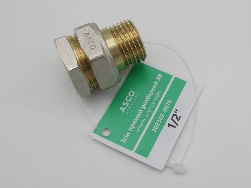 Латунний нікельований згін прямий розбірний з проточкою ASCO з діаметром 1/2", різьба ЗВ застосовується для монтажу трубопровідних систем (водопровідних, господарсько-питних, опалювальних) для транспортування будь-яких середовищ, неагресивних до матеріалів виробу. ТЕХНІЧНІ ХАРАКТЕРИСТИКИ: тиск робочий 4,0 мПа (40 бар) (для розмірів від 1/2 "до 1"; 2,5 мПа (25 бар) (для розмірів від 1 1/4 "до 2"). Робоча температура: від -20 до +200 ° С (для виробів без ущільнення), від -20 до +120 ° С (для виробів з ущільненням EPDM). Матеріал корпусу: латунь CW617N (ЛС 59-2). Латунні різьбові фітинги ASCO мають ряд беззаперечних переваг, а саме: покриття нікель, що не боїться подряпин! Проточка різьб - показує якість латуні. А сама різьба точна і без задирок (не травмує пальці порізами). І це ще не все. Латунні різьбові фітинги від АСКО мають штрихкод - на коробках і на кожному окремому фітингу (кожна окрема штучка має підвіс із зазначенням артикула і штрихкод, на деяких фітингах замість бірки йде поліетиленовий пакетик з наклейкою, на якій також є артикул і штрихкод). Саме завдяки цьому різьбові перехідники ASCO легко приймати на складі і пересорти зведені до мінімуму