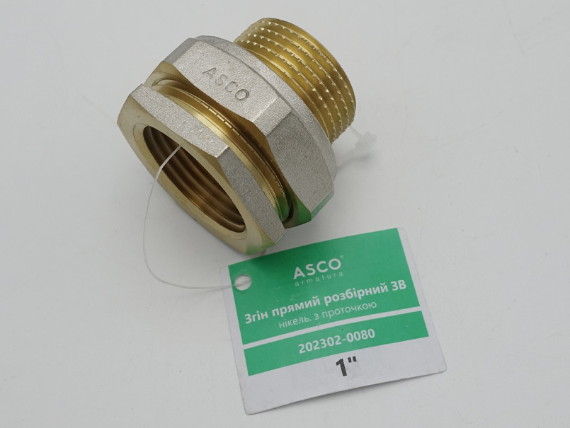Латунний нікельований згін прямий розбірний з проточкою ASCO з діаметром 1", різьба ЗВ застосовується для монтажу трубопровідних систем (водопровідних, господарсько-питних, опалювальних) для транспортування будь-яких середовищ, неагресивних до матеріалів виробу. ТЕХНІЧНІ ХАРАКТЕРИСТИКИ: тиск робочий 4,0 мПа (40 бар) (для розмірів від 1/2 "до 1"; 2,5 мПа (25 бар) (для розмірів від 1 1/4 "до 2"). Робоча температура: від -20 до +200 ° С (для виробів без ущільнення), від -20 до +120 ° С (для виробів з ущільненням EPDM). Матеріал корпусу: латунь CW617N (ЛС 59-2). Латунні різьбові фітинги ASCO мають ряд беззаперечних переваг, а саме: покриття нікель, що не боїться подряпин! Проточка різьб - показує якість латуні. А сама різьба точна і без задирок (не травмує пальці порізами). І це ще не все. Латунні різьбові фітинги від АСКО мають штрихкод - на коробках і на кожному окремому фітингу (кожна окрема штучка має підвіс із зазначенням артикула і штрихкод, на деяких фітингах замість бірки йде поліетиленовий пакетик з наклейкою, на якій також є артикул і штрихкод). Саме завдяки цьому різьбові перехідники ASCO легко приймати на складі і пересорти зведені до мінімуму