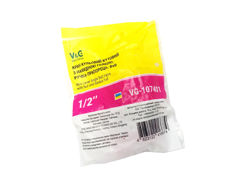 Кран кульовий Valogin кутовий 1/2"ВВ з накидною гайкою VG-107401 1/16 шт