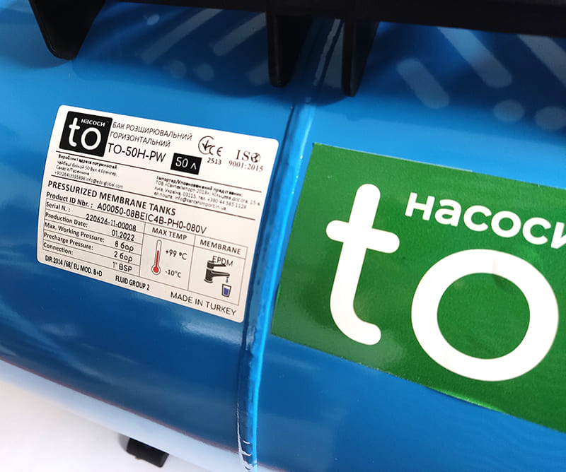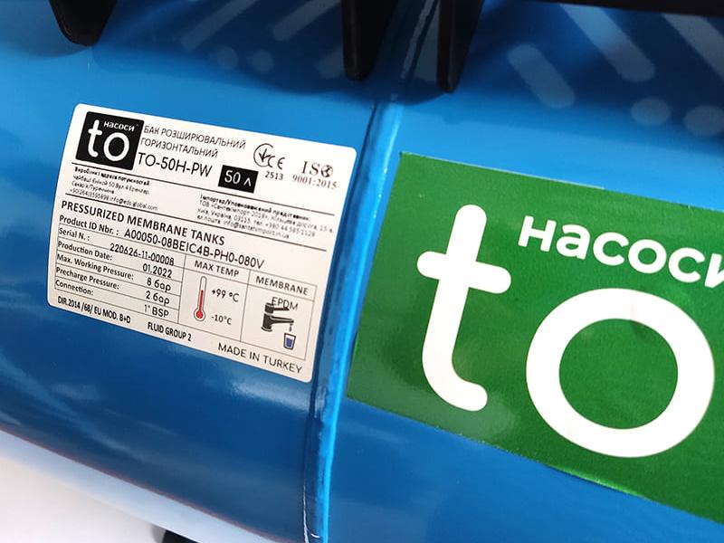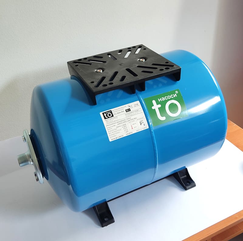 Гідроакумулятор горизонтальний toНАСОСИ 50 л 8 бар 1'' змінна EPDM мембрана блакитний TO-50H-PW
