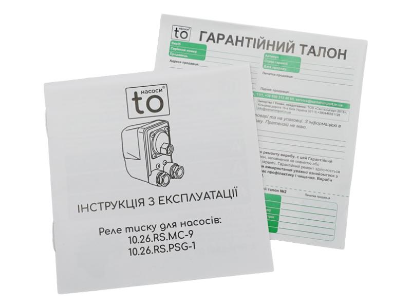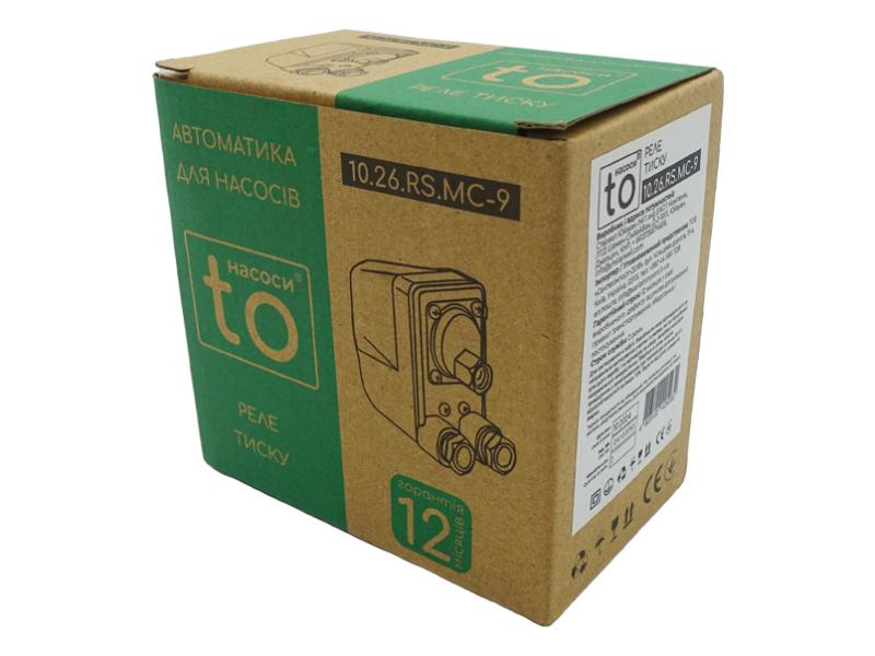 Реле тиску від бренду toНАСОСИ моделі 10.26.RS.MC-9 призначене для автоматизації роботи електронасоса, включаючи його при зниженні тиску (відкриття кранів) у системі водопостачання нижче встановленої межі, та відключаючи електронасос при досягненні верхньої встановленої межі (закриття кранів). Характеристики: Діапазон тиску: 1,4-2,8 бар Максимально допустимий тиск: 6 бар З'єднання реле: 1/4" Максимальний робочий струм: 16(10) А Напруга та частота мережі: 220 В, 50 Гц Максимальна температура довкілля: +55 °С