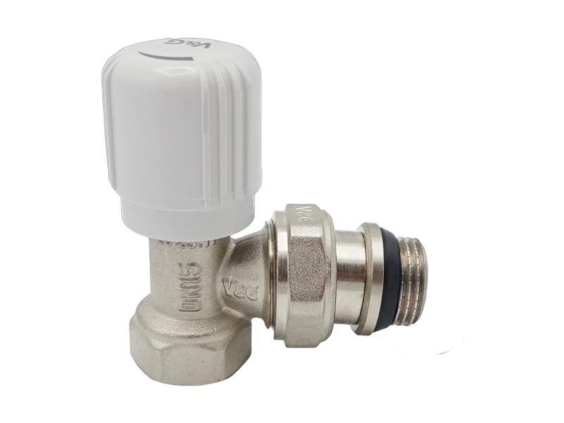 Кутовий радіаторний вентиль Valogin застосовується для зміни витрат рідини в опалювальних приладах за допомогою ручного регулювання в трубопроводах господарсько-питного водопостачання. Вентиль може застосовуватися як в однотрубних, так і в двотрубних системах опалення. ТЕХНІЧНІ ХАРАКТЕРИСТИКИ: робочий тиск: 1,0 мПа (10 бар), робоча температура: від -20 до +120 ° С. Матеріал корпусу: латунь CW617N (ЛЗ 59-2). Затвор: латунь CW617N (ЛЗ 59-2). Ущільнення штока: EPDM (етилен-пропіленовий каучук). Ручка: ABS-пластик. Ущільнення знімного патрубка: EPDM (етилен-пропіленовий каучук). Ущільнення приєднувальної різьби: EPDM (етилен-пропіленовий каучук). Особливості: Подвійне ущільнення знімного патрубка: метал до металу + EPDM, подвійне ущільнення штока, додаткове ущільнення на приєднувальній різьбі для зручності монтажу.