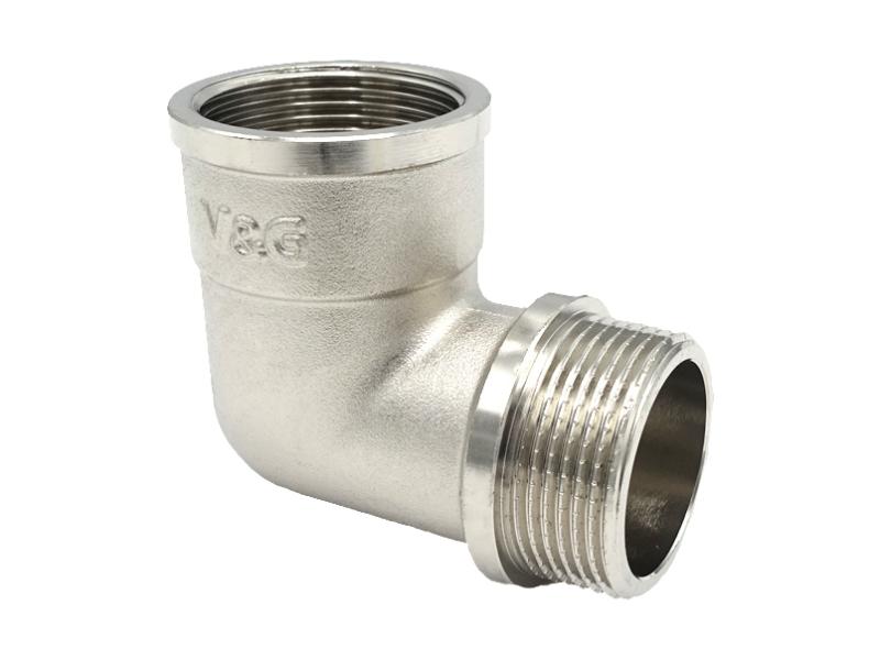 Латунні різьбові фітинги V & G (нікельовані, хромовані) застосовуються для монтажу трубопровідних систем (водопровідних, господарсько-питних, опалювальних) для транспортування будь-яких середовищ, неагресивних до матеріалів виробу. ТЕХНІЧНІ ХАРАКТЕРИСТИКИ: тиск робочий 2,5 мПа (25 бар) (для розмірів від 1/2 "до 1", крім VG-204301, VG-204302); 1,6 мПа (16 бар) (для розмірів від 1 1/4 "до 2"). Робоча температура: від -20 до +200 ° С (для виробів без ущільнення), від -20 до +130 ° С (для виробів з ущільненням EPDM). Матеріал корпусу: латунь CW617N (ЛС 59-2). Кутник дюйм з чвертю нікельований внутрішньо-зовнішня різьба застосовується там, де необхідно створити поворот у трубопроводі під певним кутом. Інші назви цього фітинга: коліно різьбове, кут латунний.