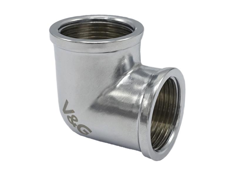 Латунні різьбові фітинги V & G (нікельовані, хромовані) застосовуються для монтажу трубопровідних систем (водопровідних, господарсько-питних, опалювальних) для транспортування будь-яких середовищ, неагресивних до матеріалів виробу. ТЕХНІЧНІ ХАРАКТЕРИСТИКИ: тиск робочий 2,5 мПа (25 бар) (для розмірів від 1/2 "до 1", крім VG-204301, VG-204302); 1,6 мПа (16 бар) (для розмірів від 1 1/4 "до 2"). Робоча температура: від -20 до +200 ° С (для виробів без ущільнення), від -20 до +130 ° С (для виробів з ущільненням EPDM). Матеріал корпусу: латунь CW617N (ЛС 59-2). Кутник хромований внутрішня-внутрішня різьба застосовується там, де необхідно створити поворот у трубопроводі під певним кутом. Хромоване покриття дозволяє створити естетичне з'єднання, там де потрібний монтаж труби у відкритому просторі. Інші назви цього фітинга: коліно різьбове, кут латунний.