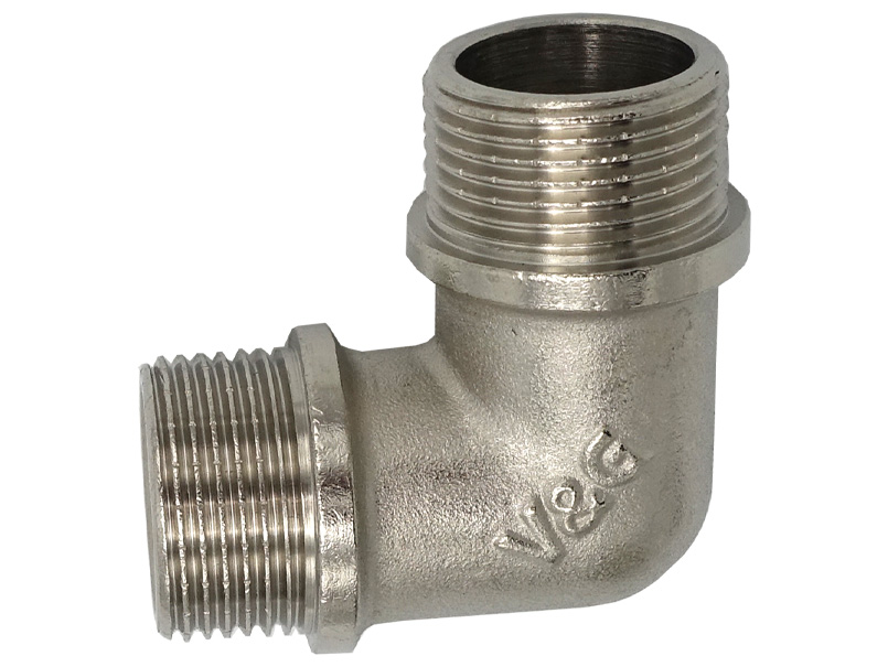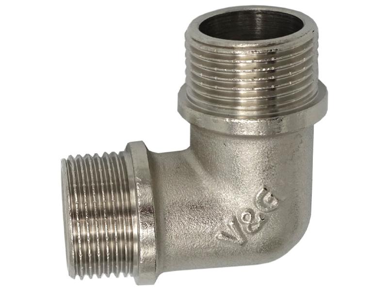 Латунні різьбові фітинги V & G (нікельовані, хромовані) застосовуються для монтажу трубопровідних систем (водопровідних, господарсько-питних, опалювальних) для транспортування будь-яких середовищ, неагресивних до матеріалів виробу. ТЕХНІЧНІ ХАРАКТЕРИСТИКИ: тиск робочий 2,5 мПа (25 бар) (для розмірів від 1/2 "до 1", крім VG-204301, VG-204302); 1,6 мПа (16 бар) (для розмірів від 1 1/4 "до 2"). Робоча температура: від -20 до +200 ° С (для виробів без ущільнення), від -20 до +130 ° С (для виробів з ущільненням EPDM). Матеріал корпусу: латунь CW617N (ЛС 59-2). Кутник три чверті дюйма нікельований зовнішня-зовнішня різьба застосовується там, де необхідно створити поворот у трубопроводі під певним кутом. Інші назви цього фітинга: коліно різьбове, кут латунний.