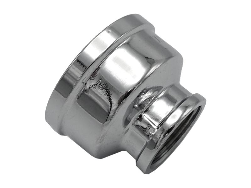 Латунні різьбові фітинги V & G (нікельовані, хромовані) застосовуються для монтажу трубопровідних систем (водопровідних, господарсько-питних, опалювальних) для транспортування будь-яких середовищ, неагресивних до матеріалів виробу. ТЕХНІЧНІ ХАРАКТЕРИСТИКИ: тиск робочий 2,5 мПа (25 бар) (для розмірів від 1/2 "до 1", крім VG-204301, VG-204302); 1,6 мПа (16 бар) (для розмірів від 1 1/4 "до 2"). Робоча температура: від -20 до +200 ° С (для виробів без ущільнення), від -20 до +130 ° С (для виробів з ущільненням EPDM). Матеріал корпусу: латунь CW617N (ЛС 59-2). Латунна хромована редукційна різьбова муфта - це фітинг, що має дві внрутрішні різьби і дозволяє з'єднати два трубопроводи різного діаметру по прямій лінії (180 градусів).