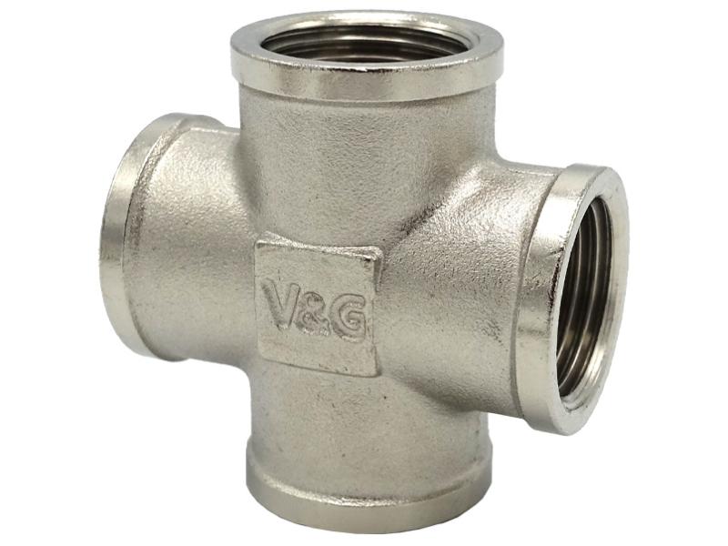 Латунні різьбові фітинги V & G (нікельовані, хромовані) застосовуються для монтажу трубопровідних систем (водопровідних, господарсько-питних, опалювальних) для транспортування будь-яких середовищ, неагресивних до матеріалів виробу. ТЕХНІЧНІ ХАРАКТЕРИСТИКИ: тиск робочий 2,5 мПа (25 бар) (для розмірів від 1/2 "до 1", крім VG-204301, VG-204302); 1,6 мПа (16 бар) (для розмірів від 1 1/4 "до 2"). Робоча температура: від -20 до +200 ° С (для виробів без ущільнення), від -20 до +130 ° С (для виробів з ущільненням EPDM). Матеріал корпусу: латунь CW617N (ЛС 59-2). Хрестовина латунна дозволяє з'єднати 4 труби в одній площині, утворюючи при цьому хрестоподібне з'єднання перехрещенням без створення додаткової площини. Півдюймова хрестовина стане вам в нагоді при прокладці труб.