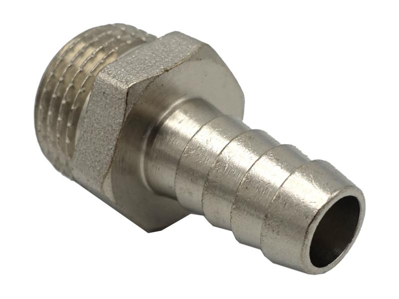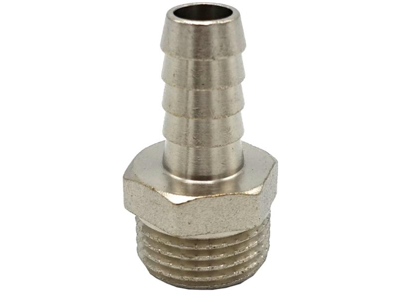 Латунні різьбові фітинги V & G (нікельовані, хромовані) застосовуються для монтажу трубопровідних систем (водопровідних, господарсько-питних, опалювальних) для транспортування будь-яких середовищ, неагресивних до матеріалів виробу. ТЕХНІЧНІ ХАРАКТЕРИСТИКИ: тиск робочий 2,5 мПа (25 бар) (для розмірів від 1/2 "до 1", крім VG-204301, VG-204302); 1,6 мПа (16 бар) (для розмірів від 1 1/4 "до 2"). Робоча температура: від -20 до +200 ° С (для виробів без ущільнення), від -20 до +130 ° С (для виробів з ущільненням EPDM). Матеріал корпусу: латунь CW617N (ЛС 59-2). Різьбові штуцери - це один з варіантів латунних різьбових фітингів, призначених для з'єднання труби з різьбовим виходом та гнучким шлангом. Відповідно у штуцера з одного боку різьба внутрішня або зовнішня, а з іншого - вихід типу "йорж", на який нанизується гумовий шланг. Застосовуються такі штуцери в системах кондиціювання та поливу. Valogin пропонує в асортименті штуцери діаметру пів дюйма із зовнішньою різьбою різної довжини вихода йорж.