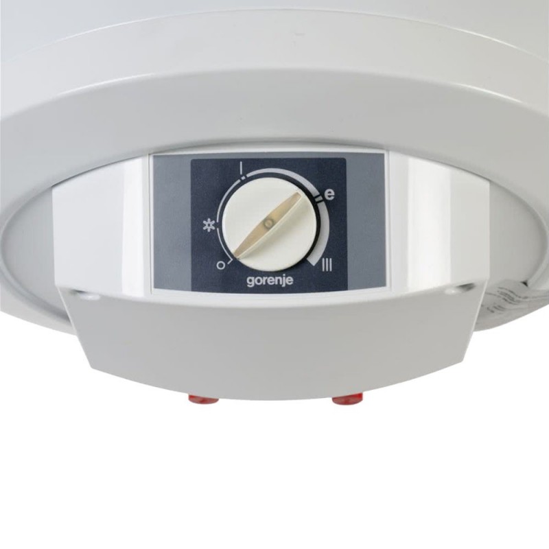 Бойлер Gorenje GBF 100 T / V9 - електричний накопичувальний водонагрівач об'ємом 100 літрів з вертикальною установкою і простим механічним керуванням. У цій моделі встановлені 2 "сухих" тени по 700 Вт, а це значить, що тен поміщений в спеціальну колбу з металу підвищеної міцності, що виключає контакт нагрівального елементу з водою і ймовірність пробою або короткого замикання. Регулятор температури розташований прямо на корпусі, що теж дуже зручно. Максимальна температура нагріву води - 75 ° C. Бак виготовлений з емальованої листової сталі. Гарантія на бак 10 років.