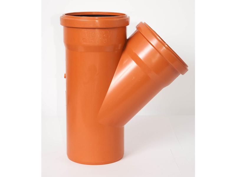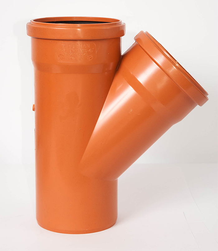 Трійник для зовнішньої каналізації Pestan. Розмір 200, кут 45. Матеріал поліпропілен. Колір помаранчевий. Виробник Сербія. Зовнішня поліпропіленова каналізація Pestan (Сербія) призначена для прокладки зовнішньої каналізації та дренажних систем. Зовнішній шар забезпечує відмінну ударну міцність, а гладкий внутрішній - низький опір. Каналізаційні труби Pestan мають великий діаметр (до 1000 мм) і використовуються для прокладки економічних безнапірних стоків. Поліпропіленові стінки стійкі до корозії, засмічення, ультрафіолету і хімічно агресивних домішок: солей, кислот, агресивних газів, сульфатів, лугів. Труби Пештан виготовляють з використанням сучасних технологій, завдяки яким ви отримуєте тришаровий прилад з відмінними механічними характеристиками. Також вони володіють відмінною електричною ізоляцією. За вагою вони не важкі, тому їх легко монтувати. Виробник: PESTAN. Країна виробник: Сербія. Область застосування труби: для каналізації. Перетин труби: кругла. Максимальна робоча температура: 60.0 (град.). Спосіб з'єднання: розтрубне. Тип труби: для зовнішніх робіт.