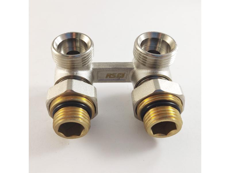 Кутовий монтажний вузол (бінокль) для нижнього підключення сталевого радіатора. Матеріал – латунь, покриття – нікель. Застосовується для установки сталевих радіаторів з нижнім типом монтажу. Різьблення: 1/2" х 3/4".