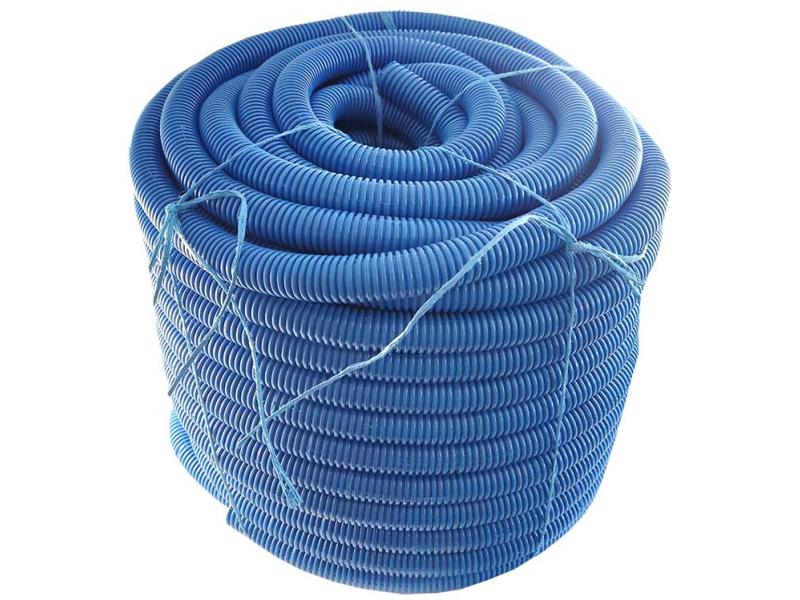 Гофрований рукав синього кольору в бухті довжиною 50 м. Внутрішній діаметр – 18 мм, зовнішній – 22 мм. Призначений для захисту зовнішніх поверхонь водопровідних труб від механічних і хімічних пошкоджень. Матеріал – пластик. Країна – виробник – Україна.