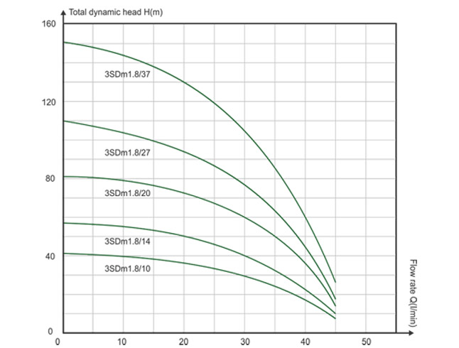Свердловинний відцентровий насос FROG 3SDm1.8/27 2.8 м3/год.,110 м без кабеля потужністю 0,75 кВт. Стандартне підключення кабеля. Сфера застосування: • Подача води з колодязя або резервуара • Подача води для сільськогосподарських цілей • Промислове охолодження та переробка • Розподіл води та підвищення тиску тощо ТЕХНІЧНІ ДАНІ • Максимальна температура води: 35˚С • Максимально дозволений вміст піску: 1500 г/м3 • Маслонаповнений двигун з обмоткою • Максимальна глибина занурення: 120 м • Напруга / частота: 220-240 В / 50 Гц (оснащено контрольною автоматикою) • Клас ізоляції: В • Клас захисту: IP68 МАТЕРІАЛИ: Корпус насоса: нержавіюча сталь Вхідний отвір, випускний отвір Cast-Cu (лита мідь) Фільтр AISI 304SS Механічне ущільнення: Кераміка Дифузор: PC Верхня опора: Мідь/Сталь Робочі колеса: Поліацеталь Обмотка: мідь/ Випуск: 1'. Габарити самого насоса, мм: д1360 * ш70 * в70