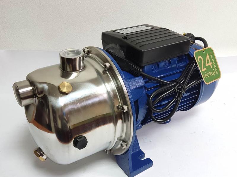 Насоси серії JET відмінно підійдуть для перекачування чистої води та хімічно неагресивних рідин. Можуть застосовуватися в побуті та промисловості, для автоматичної подачі води в комплексі з резервуарами та автоматичними агрегатами, підтримки тиску, для поливу городів, садів тощо. Встановлювати в місцях захищених від атмосферного впливу. Серія JET включає насоси відцентрового типу з одним робочим колесом. Тиск у відцентрових насосах створюється завдяки відцентровій силі, що виникає при дії лопаток робочого колеса на рідину. Глибина підйому води до 9 м - досягається завдяки ежектору (трубці Вентурі), встановленій у корпусі насоса. Рідина всмоктується лише частково подається в нагнітальний патрубок. Частина води, що залишилася рециркулює через ежектор, який з'єднаний з камерою всмоктування, створює в ній розрідження, необхідне для підняття води. Перед запуском необхідно залити воду в насосну частину. Потужність насосу JETS100 0,75 кВт, продуктивність 50л/хв, напір H50 м. Переваги: Статор електродвигуна з холоднокатаної сталі Мідна обмотка Вбудований термічний захист від перегріву електродвигуна (спрацьовує при 80 градусах) Міцний корпус з нержавіючої сталі Робоче колесо з латуні Вал з нержавіючої сталі Стійке покриття насиченого синього кольору Технічні характеристики Перекачувана рідина: чиста вода Загальна мінералізація води, не більше: 1500 г/м³ Максимальна температура рідини, що перекачується: +90°C Максимальна висота всмоктування, м: 9 Матеріал корпусу: чавун Частота обертання, об/хв 2850 Напруга, В: 220-240 Частота мережі, Гц: 50 Клас захисту: IP44 Клас ізоляції: B Маса, кг: 11,7 Гарантійний термін експлуатації, міс: 24. Стандарти роботи: IEC 60034-1 IEC 335-1 IEC 34-1 ISO 2548 Габарити самого насоса, мм: д376 * ш200 * в214