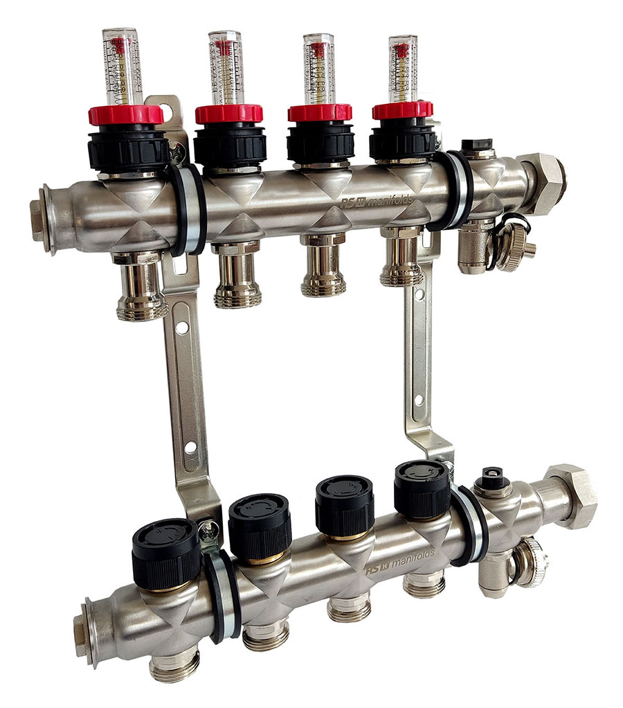 Колекторна група в зборі нерж.SS304 з відповітр. та дренажем 1"*3/4"*4вих. RS-k