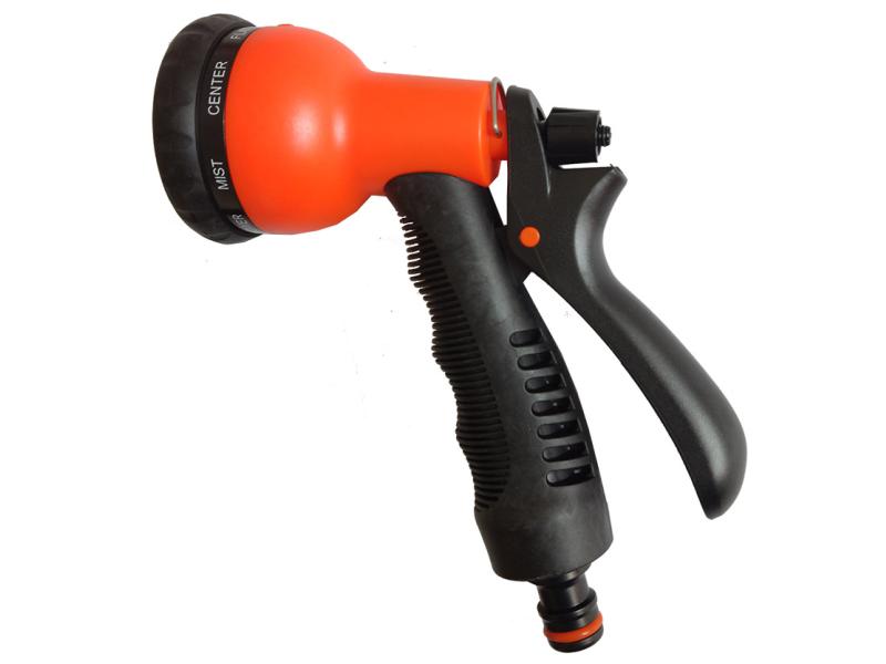 Пістолет-розпилювач виробництва Україна, економ-клас, призначений для поливу різних рослин. Дозволяє плавно регулювати потік води, що скорочує її витрата. Має чотири режими поливу, придатних для різних умов. З'єднується зі шлангом за допомогою швидкоз'ємного коннектора.