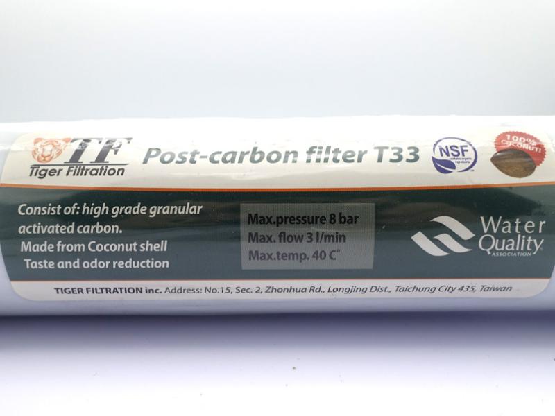 Постфільтр до осмоса 2" JG Tiger Filtration Т33 ШТУЦЕР( кокос)
