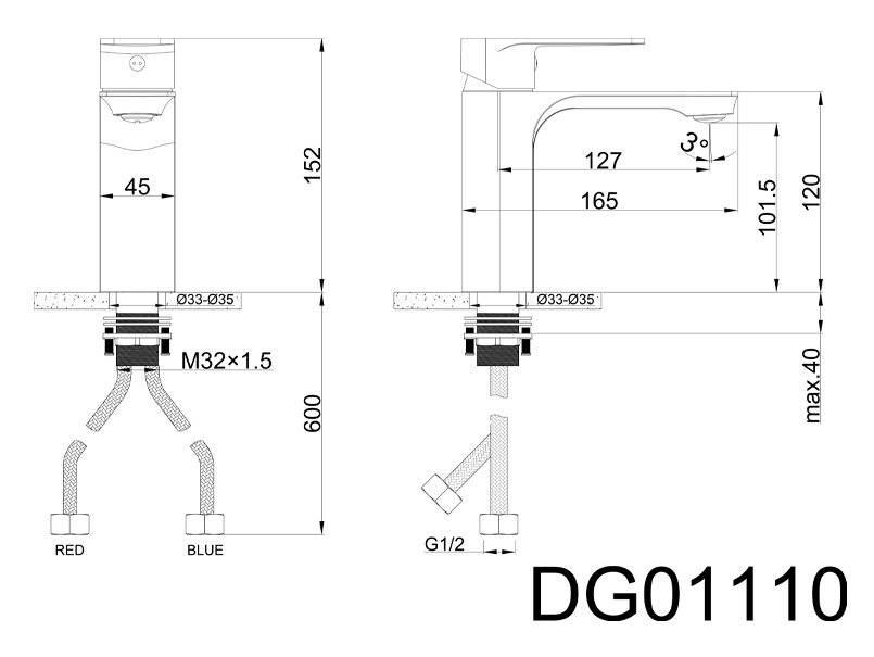 Змішувач для умивальника латунь AIM чорний матовий DG01110 (matte black)