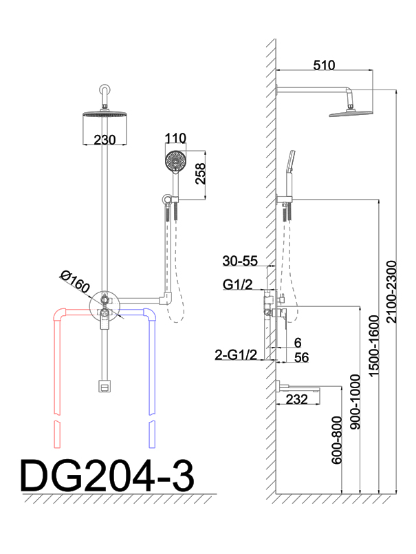 Душова система AIM прихованого монтажу хром DG204-3 (chrome)