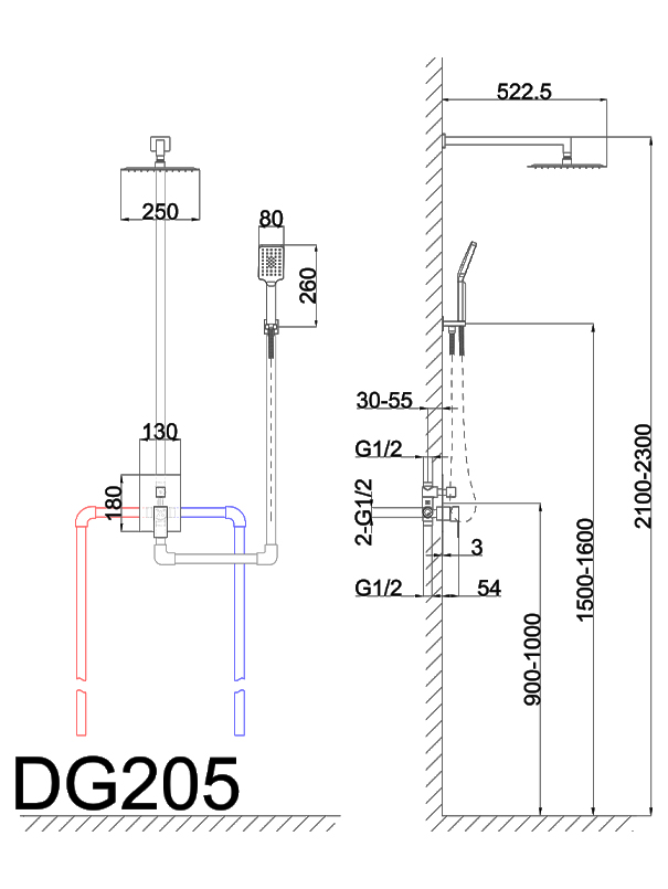 Душова система AIM прихованого монтажу хром DG205 (chrome)