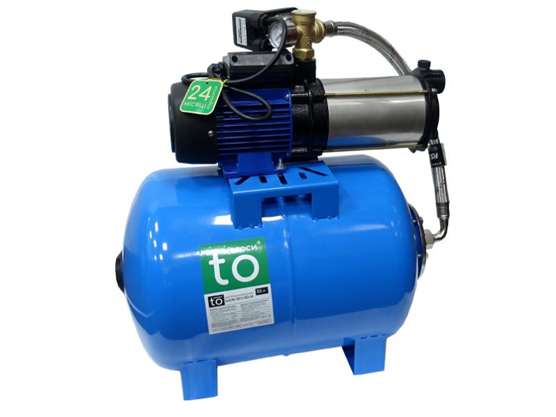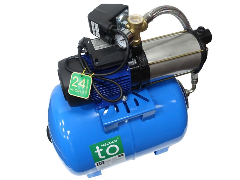 Насосна станція з горизонтальним гідробаком на ніжках зі сталевою станиною (для кріплення) від виробника to Насоси. Розроблена для ефективної подачі води з відкритих вод, колодязів, свердловин та резервуарів. Вона ідеально підходять для системи поливу садів і міст, крапельного зрошення та автоматичного підвищення тиску води. Основні характеристики насоса: Корпус, виготовлений із чавуна з антикорозійним покриттям. Робоче колесо виготовлене із високоякісного полімеру. Вал двигуна з нержавіючої сталі AISI 304. Статор з холоднокатаної сталі. Високоякісна мідна обмотка Високоточне балансування ротора. Термічний захист від перегріву для однофазних двигунів потужністю менше 1,5 кВт. Характеристики бака: Корпус бака з пофарбованої сталі (двошарова епоксидна основна та поліуретанова акрилова фарба). Має змінну мембрану з фланцевою кришкою гвинтового з'єднання. Фланець із оцинкованої гальванізованої сталі. Робочий тиск і тиск заміни мембрани зазначений на самому виробі. Працює при температурі від -10 до +99 градусів. Станції призначені для перекачування чистої води з невеликою мінералізацією (не більше 1500 г/м³) та можуть працювати з рідиною максимальної температури до +90°C. Всмоктують воду на глибині до 8 метрів і мають високу частоту обертання 2850 об/хв. Стандарти роботи: IEC 60034-1, IEC 335-1, IEC 34-1, ISO 2548. Гарантійний термін експлуатації 24 місяці.