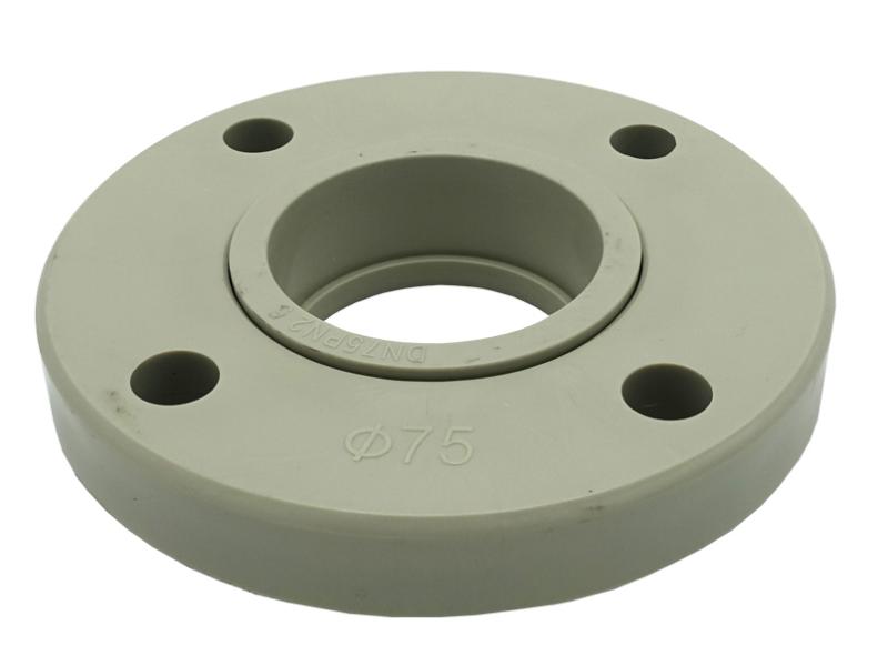 Сірий поліпропіленовий фланець пластиковий, діаметр 75 мм. З'єднувальний елемент, який використовується для з'єднання кінців труб або інших ППР фітингів. Фланці дозволяють створити надійне та герметичне з'єднання, що може бути легко розібране для обслуговування або заміни елементів системи. Пластикові фланці добре переносять вплив вологи, хімічних речовин та інших негативних факторів. Лінійка продукції ASCO PPR є кращою за асортиментом поліпропіленових труб і фітингів на ринку. Продукція поставляється в білому і сірому кольорі і представляє широкий діапазон з'єднувальних елементів і гідравлічної арматури: від 20 до 110 мм. В цілому асортимент бренду ASCO PPR включає понад 1000 товарних позицій. У конструкції фітингів ASCO PPR закладено кілька принципових рішень, що підвищують надійність і зручність застосування. Латунні елементи комбінованих фітингів мають зворотні проточки, що забезпечують надійніше приєднання латунної і поліпропіленової частин. Герметичність з'єднання зберігається навіть при підвищених механічних навантаженнях. Спеціальні мітки на поверхні фітингів спрощують процес монтажу. Продукція повністю відповідає нормам українського законодавства, проходить контроль якості на всіх етапах виробництва, де використовується високоякісна сировина з Німеччини та Південної Кореї.