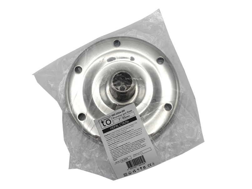 Фланець з нержавіючої сталі виробництва Китай бренда toНАСОСИ. Для мембрани з горловиною 90мм. Фланець гідроакумулятора являє собою металевий диск з шістьма отворами і різьбовим штуцером на кінці. Дана деталь є складним комплектуючим елементом гідроакумулятора. Фланець забезпечує надійну герметичність даного пристрою. До різьбової частини виробу приєднують підвідний трубопровід для подачі води в гідроакумулятор. Вказаний агрегат в парі з механічним реле тиску служить для вирівнювання напору води, який створює насосну станцію і далі розподіляється по всій системі водопостачання. Отже, застосування гідроакумулятора дозволяє уникнути гідравлічних ударів у напорних системах і, таким чином, забезпечує оптимальний тиск, необхідний для функціонування системи подачі та розподілу води.