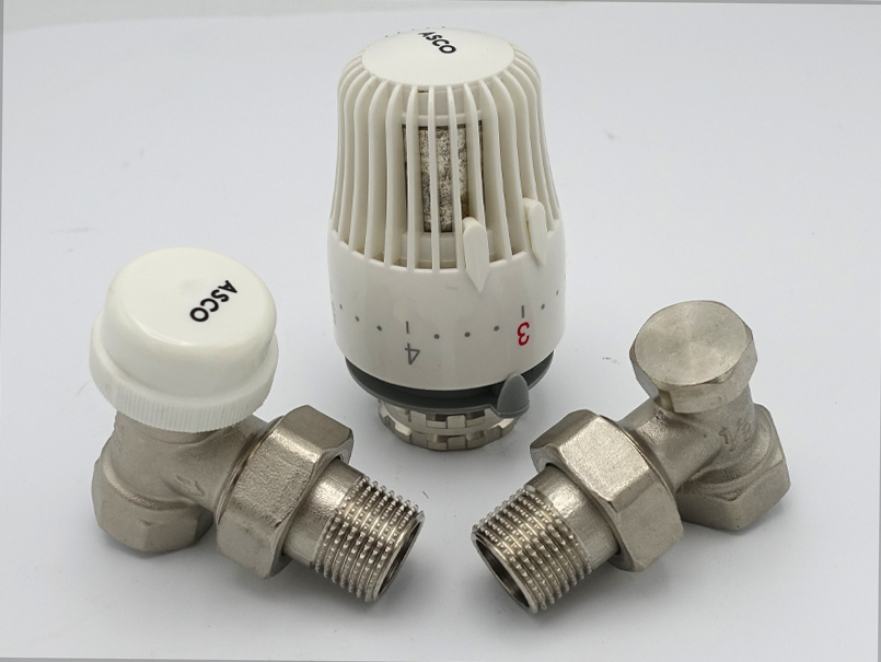 Комплект термостатичний кутовий ASCO 1/2". Комплект для підключення радіаторів торгової марки ASCO складається з двох радіаторних кранів і термоголови. Термостатична голова з різьбою M30 x 1,5 встановлюється на вентилі з гайкою так, щоб ручка регулювання температури була направлена на цифру "5". Далі фіксація затягується вручну. Увага! Не повинно бути жодного отвору відносно корпусу клапана. Щоб забезпечити правильну роботу, голова повинна монтуватися таким чином, щоб забезпечити вільний потік повітря навколо датчика, розташованого в головній ручці. Тому в жодному випадку не потрібно закривати термоголову завісою (фіранкою), оскільки це може призвести до неправильного вимірювання температури в приміщенні. Для регулювання кімнатної температури варто повернути регулятор, щоб встановити бажану температуру приміщення, наприклад, 20°C, що відповідає шкалі «3». Встановіть необхідну температуру в приміщенні. Якщо температура не досягає бажаного показника, встановіть значення на вищу цифру, наприклад, "4". Для регулювання потрібної температури коригуйте задану цифру кожні кілька годин. Термоголова має спеціальні фіксатори позиції які захищають голову від ненавмисного перемикання (дитиною, домашньою твариною). Набори для підключення радіаторів з термоголовою ASCO поставляються в картонній упаковці, комплектуються прямими або кутовими радіаторними кранами.