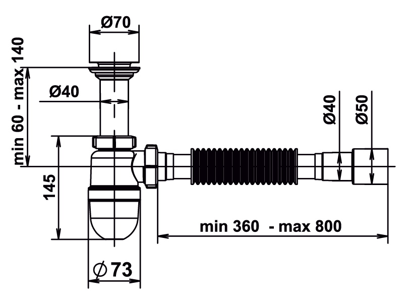 Сифон для раковини 11/2"х40 з литим випуском, гофротрубою 40х40/50 MILLZ (1/45шт)