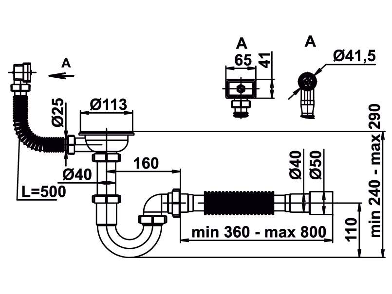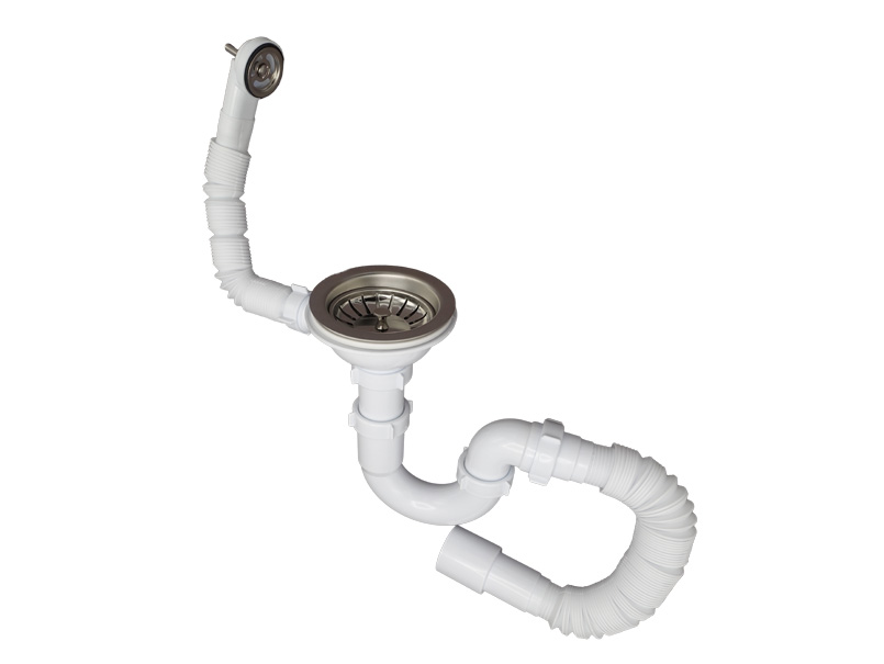 Сифон для мийки 3 1/2"х40 з різьб.випуск.,ПРЯМОТОЧН,г-трубою 40х40/50 та гнучк.кругл.переливом MILLZ