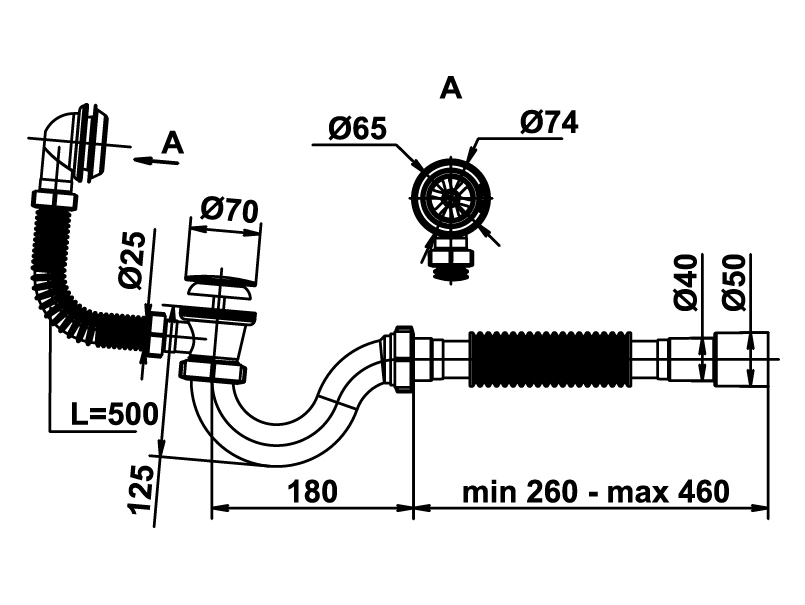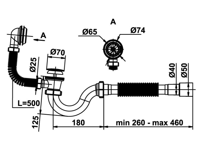 Сифон для ванни прямоточний з випуском Сlick-Сlack 11/2" та гофротрубою 40х40/50 MILLZ 1/40