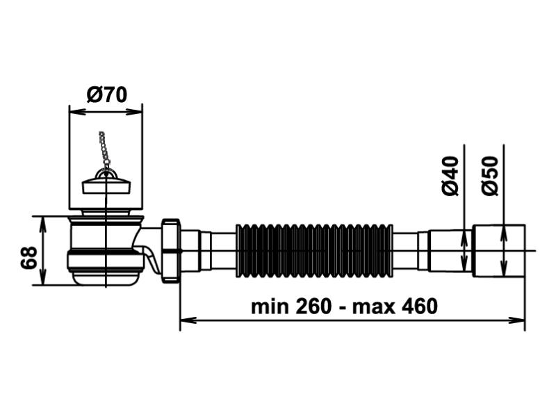 Сифон низький пляшковий для душ.піддону з випуском 11/2" та гофротрубою 40*40/50 MILLZ 1/60