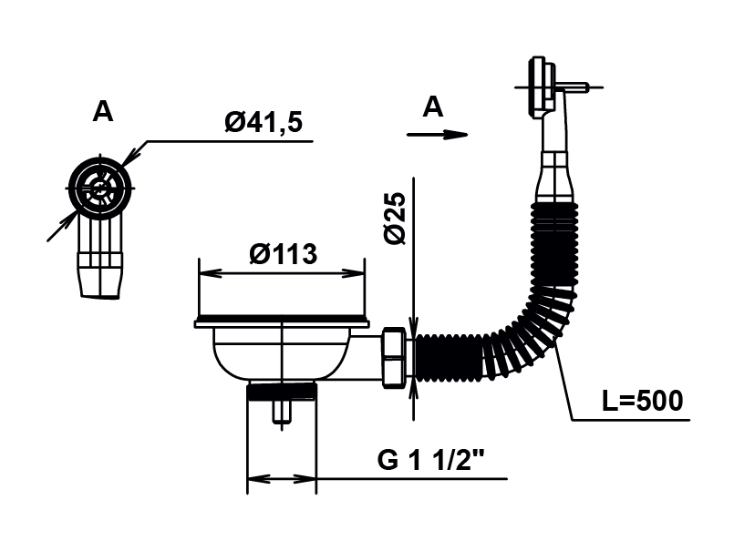 Випуск різьбовий 3 1/2" з гнучким круглим переливом MILLZ 1/25