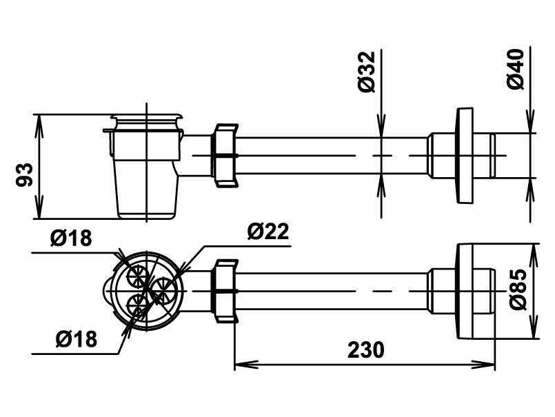 Сифон із сухим/гідрозатвором д/монтажу кондиціонера,трубка 40/32х200 з розетками 32 та 40 MILLZ