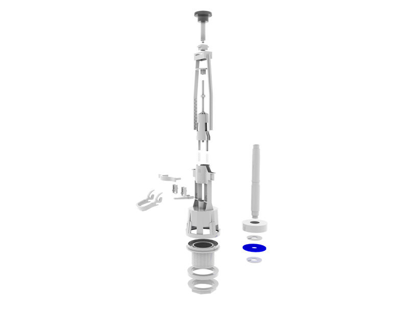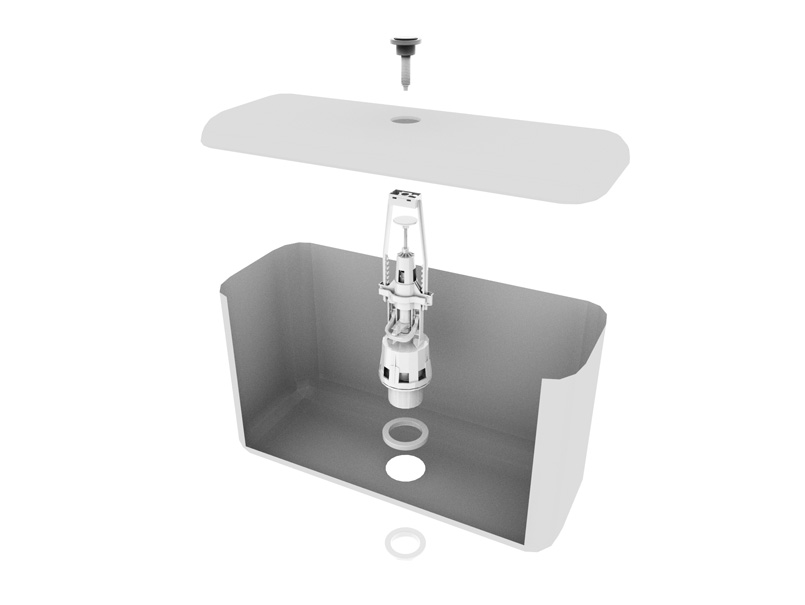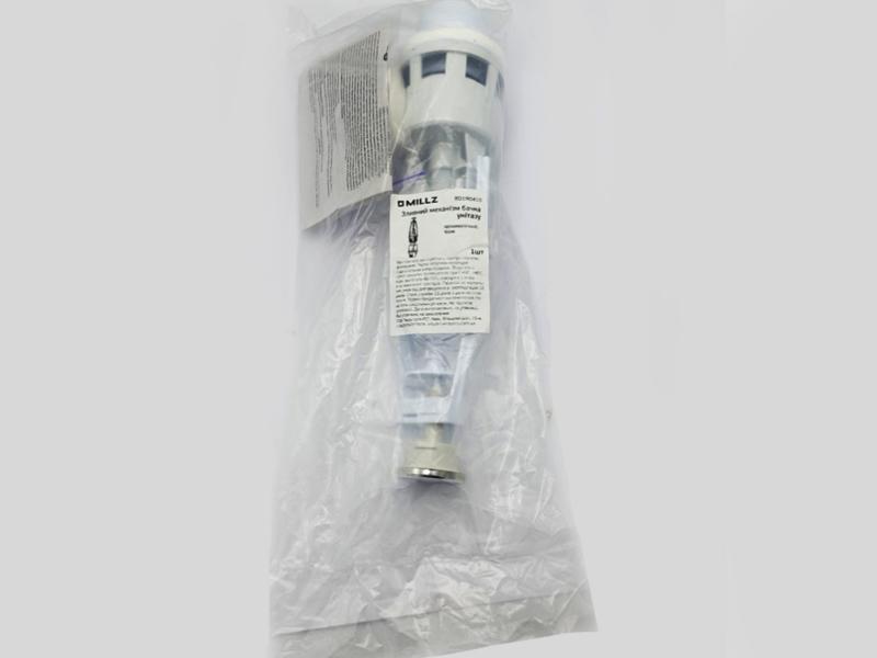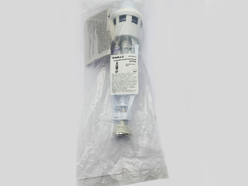 Зливний механізм бачка унітазу з одним режимом зливу і хромованою кнопкою MILLZ BD1R0410. Комплектується двома кільцями з еластичного спіненого ППУ, що забезпечують надійну герметизацію під час встановлення механізму в бачку унітазу. Так само в комплект входить набір кріплення бачка до унітазу. Область застосування для зливу води з бачка унітазу для бачка унітазу зі зливним отвором Ø60-70 мм Технічні характеристики діаметр приєднувального отвору в бачку унітазу 60-70 мм кількість режимів зливу - 1 середня витрата води, що подається з бачка на змив через арматуру, не менше ніж 2,5 л/сек рівень шуму під час роботи не більше 50 дБА встановлений ресурс не менше 150000 циклів зусилля натискання кнопки для запуску зливу води не більше 20Н довжина нержавіючих гвинтів кріплення бачка до унітазу 82 мм висота комплектованого бачка з кришкою 330-400 мм Властивості комплектується двома кільцями з еластичного спіненого ППУ, що забезпечують надійну герметизацію під час встановлення механізму в бачку унітазу. У комплект входить набір кріплення бачка до унітазу гвинти, гайки і шайби для кріплення бачка до унітазу виготовлені з нержавіючої сталі. Кнопка і декоративне кільце кнопки пластмасові з хромованим покриттям робочий діапазон температур від 0 до +95 °C