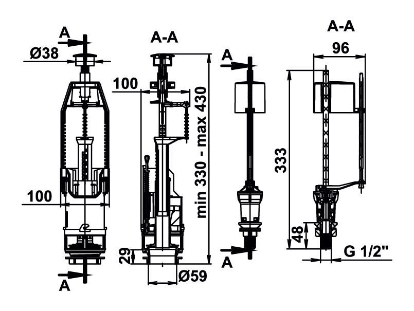 Зливний комплект: двокноп.мех.зливу та налив.клапан з нижн. підвед., 1/2" MILLZ 1/30