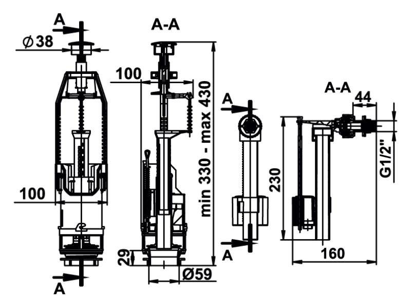 Зливний комплект: двокноп.мех.зливу та налив.клапан з бок.підвед., 1/2" MILLZ 1/30