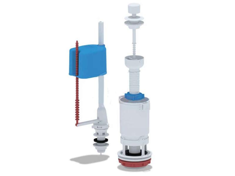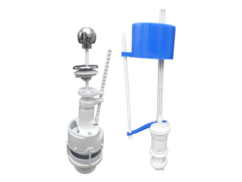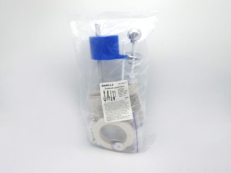 Набір для бачка унітазу MILLZ BK1R0610 складається зі штокового зливу з хромованою ручкою і наливного клапана з нижньою підводкою пластиковим штуцером з різьбленням діаметром 1/2" . Комплектується двома кільцями з еластичного спіненого ППУ, а також конусної і плоскою шайбами з еластичного високоякісного PVC, що забезпечують надійну герметізацію при установці клапана і механізму в бачку унітаза. Так само в комплект входить набір кріплення бачка до унітазу з гвинтами, гайками і шайбам з нержавіючої сталі. Область застосування для підключення унітазного бачка з нижнім підведенням до мережі водопостачання для автоматичного наповнення унітазного бачка водою для зливу води з бачка унітазу для бачка унітазу зі зливним отвором Ø60-70 мм Технічні характеристики приєднувальний розмір до мережі водопостачання G1/2" діапазон робочих тисків 0,05-1,0 Мпа час заповнення бачка в обсязі 6,0 л не більше 150 секунд стабільність рівня наповнення унітазного бачка водою не більше +/-2 мм рівень шуму при роботі не більше 50 дБА встановлений ресурс не менше 150000 циклів висота комплектного бачка з кришкою 260-420 мм діаметр приєднувального отвору в бачку унітаза 60-70 мм кількість режимів зливу - 1 середня витрата води, яка подається з бачка на змив через арматуру не менше 2,5 л/сек зусилля підйому ручки для запуску зливу води не більше 30Н довжина нержавіючих гвинтів кріплення бачка до унітазу 82 мм Властивості комплектується ущільнювальними конусної і плоскою шайбами для герметизації з'єднання наливного клапана з бачком унітазу конусна і плоска шайби виготовлені з еластичного високоякісного PVC комплектується двома кільцями з еластичного спіненого ППУ, що забезпечують надійну герметизацію при установці зливного механізму в бачок унітаза, а так само при установці бачка унітазу на поличку унітаза штуцер різьбовий з високоякісного пластика в комплект входить набір кріплення бачка до унітазу гвинти, гайки і шайби для кріплення бачка до унітазу виготовлені з нержавіючої сталі ручка і декоративне кільце ручки пластмасові з хромованим покриттям робочий діапазон температур від 0 до + 95° C