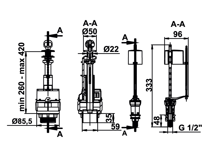 Зливний комплект: механізм зі штоковим режимом зливу (хром) +налив.клапан з нижн. підвед.,1/2" MILLZ