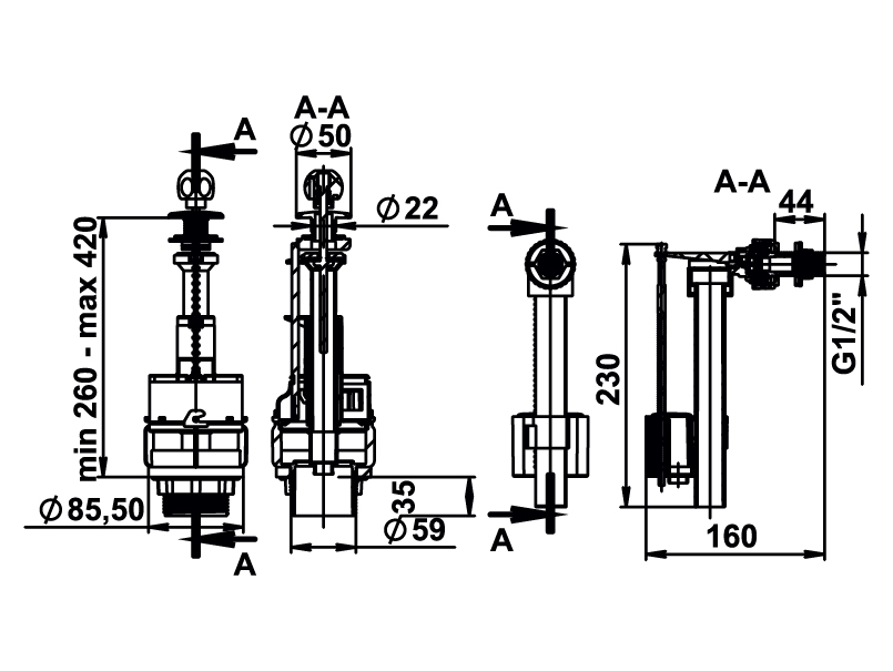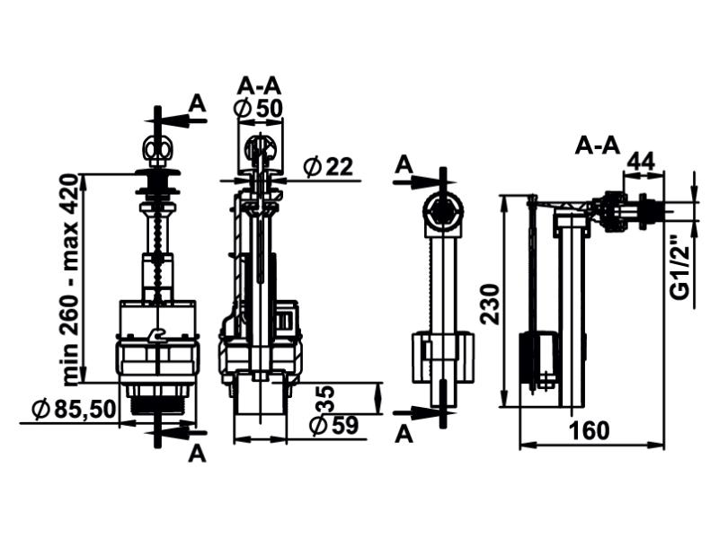 Зливний комплект: механізм зі штоковим режимом зливу (хром) + налив.клапан з бок.підвед., 1/2" MILLZ