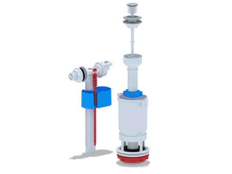 Набір для бачка унітазу MILLZ BK1R0910 складається зі штокового зливу з хромованою ручкою і наливного клапана з бічною підводкою пластиковим штуцером з різьбленням діаметром 1/2". Комплектується двома кільцями з еластичного спіненого ППУ, а також конусною і плоскою шайбами з еластичного високоякісного PVC, що забезпечують надійну герметизацію при установці клапана і механізму в бачку унітаза. Так само в комплект входить набір кріплення бачка до унітазу з гвинтами, гайками і шайбам з нержавіючої сталі. Область застосування для підключення унітазногобачка з боковим підведенням до мережі водопостачання для автоматичного наповнення унітазного бачка водою для зливу води з бачка унітазу для бачка унітазу із зливним отвором Ø60-70 мм Технічні характеристики приєднувальний розмір до мережі водопостачання G1/2" діапазон робочих тисків 0,05-1,0 Мпа час заповнення бачка в обсязі 6,0 л не більше 150 секунд стабільність рівня наповнення унітазного бачка водою не більше +/-2 мм рівень шуму при роботі не більше 50 дБА встановлений ресурс не менше 150000 циклів висота комплектного бачка з кришкою 260-420 мм діаметр приєднувального отвору в бачку унітаза 60-70 мм кількість режимів зливу - 1 середня витрата води, яка подається з бачка на змив через арматуру не менше 2,5 л/сек зусилля підйому ручки для запуску зливу води не більше 30Н довжина нержавіючих гвинтів кріплення бачка до унітазу 82 мм Властивості комплектується ущільнювальними конусної і плоскою шайбами для герметизації з'єднання наливного клапана з бачком унітазу конусна і плоска шайби виготовлені з еластичного високоякісного PVC комплектується двома кільцями з еластичного спіненого ППУ, що забезпечують надійну герметизацію при установці зливного механізму в бачок унітаза, а так само при установці бачка унітазу на поличку унітаза штуцер різьбовий з високоякісного пластика в комплект входить набір кріплення бачка до унітазу гвинти, гайки і шайби для кріплення бачка до унітазу виготовлені з нержавіючої сталі ручка і декоративне кільце ручки пластмасові з хромованим покриттям робочий діапазон температур від 0 до + 95° C