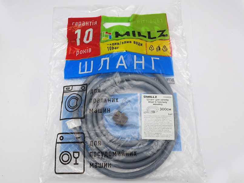Шланг для заливу води в пральну машину (300см) MILLZ 1/50