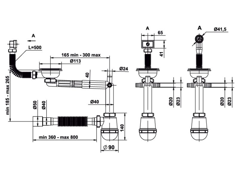 Сифон мийка 3 1/2"х40 телеск, різьб.вип, відвід пр.маш і посуд, гофр 40х40/50 кругл.перелив MILLZ