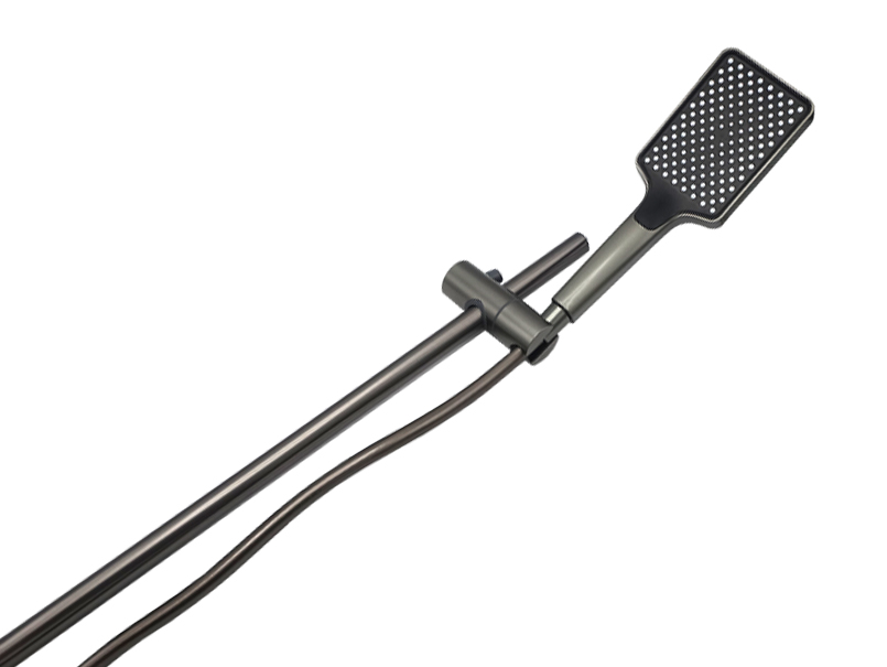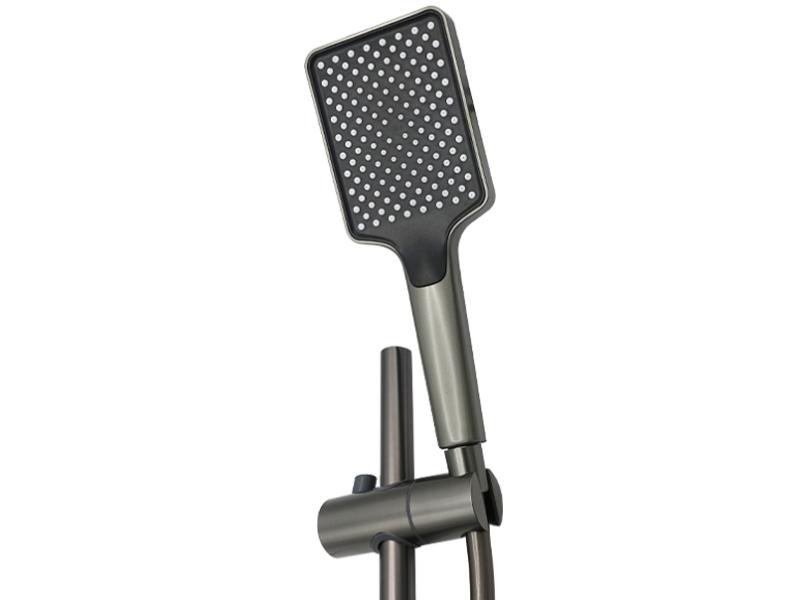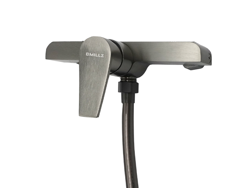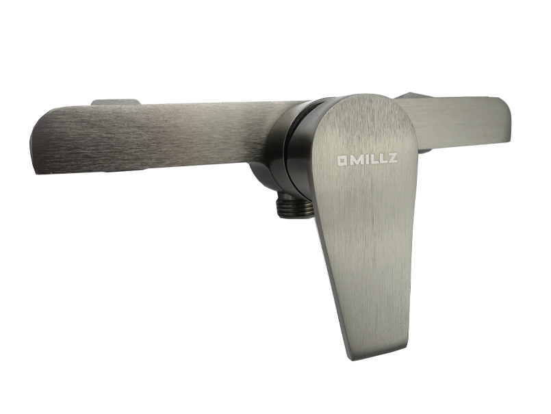 Змішувач для душа зі стійкою бренду MILLZ MRS-AL-E2-1 Gray – це витончене та сучасне рішення для душової кабіни. Він виготовлений із високоякісного екологічного алюмінію, який підходить навіть для питної води. Стійке сіре покриття надає елегантного вигляду та захищає поверхню від впливу вологи. Корпус має видовжену прямокутну форму з плавно заокругленими краями зверху та чіткими гострими лініями внизу, створюючи вишуканий стиль. Одноважільний перемикач із гладкою ручкою, що трохи звужується на кінці, забезпечує зручне регулювання натиску та температури води. Під ручкою розташоване маркування у вигляді білого кружечка з двома кольоровими іконками – синьою та червоною – для швидкого орієнтування між холодною та гарячою водою. Квадратна лійка з білими форсунками підключається до прямого силіконового шланга. Після використання душ фіксується на спеціальний тримач, далі кріпиться на штангу. Саме це є перевагою цього товару, оскільки стійку можна коригувати під зріст споживача, і це дуже комфортно. Тип механізму – картриджний. Встановлюється змішувач на вертикальну поверхню, що робить його ідеальним для сучасних душових кабін. Комплектація включає: змішувач, шланг довжиною 1 м 50 см, квадратну лійку, тримач для душа, стійку довжиною 60 см, дві прокладки, дві декоративні чаші, два ексцентрики, два тримачі, два дюбелі, два саморізи, інструкцію та гарантійний талон. Корпус упакований у білий мішечок для запобігання подряпинам та продається у картонній коробці зі штрих-кодом. Габарити упаковки становлять 63,0*16,0*10,5 см. Гарантійний термін становить 4 роки.