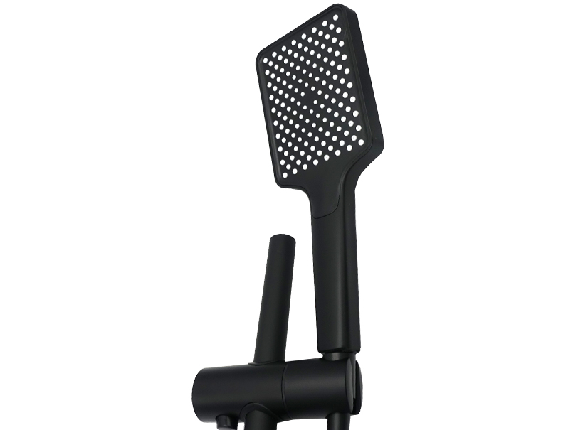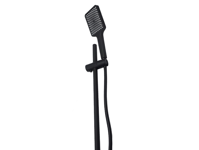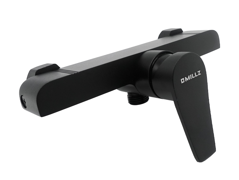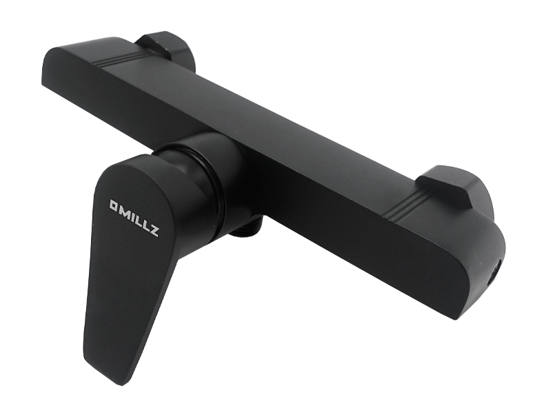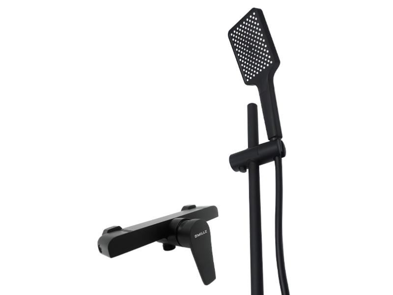 Змішувач для душа зі стійкою бренду MILLZ MRS-AL-E2-1 Black – це витончене та сучасне рішення для душової кабіни. Він виготовлений із високоякісного екологічного алюмінію, який підходить навіть для питної води. Стійке чорне покриття надає елегантного вигляду та захищає поверхню від впливу вологи. Корпус має видовжену прямокутну форму з плавно заокругленими краями зверху та чіткими гострими лініями внизу, створюючи вишуканий стиль. Одноважільний перемикач із гладкою ручкою, що трохи звужується на кінці, забезпечує зручне регулювання натиску та температури води. Під ручкою розташоване маркування у вигляді білого кружечка з двома кольоровими іконками – синьою та червоною – для швидкого орієнтування між холодною та гарячою водою. Квадратна лійка з білими форсунками підключається до прямого силіконового шланга. Після використання душ фіксується на спеціальний тримач, далі кріпиться на штангу. Саме це є перевагою цього товару, оскільки стійку можна коригувати під зріст споживача, і це дуже комфортно. Тип механізму – картриджний. Встановлюється змішувач на вертикальну поверхню, що робить його ідеальним для сучасних душових кабін. Комплектація включає: змішувач, шланг довжиною 1 м 50 см, квадратну лійку, тримач для душа, стійку довжиною 60 см, дві прокладки, дві декоративні чаші, два ексцентрики, два тримачі, два дюбелі, два саморізи, інструкцію та гарантійний талон. Корпус упакований у білий мішечок для запобігання подряпинам та продається у картонній коробці зі штрих-кодом. Габарити упаковки становлять 63,0*16,0*10,5 см. Гарантійний термін становить 4 роки.