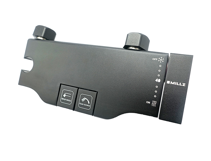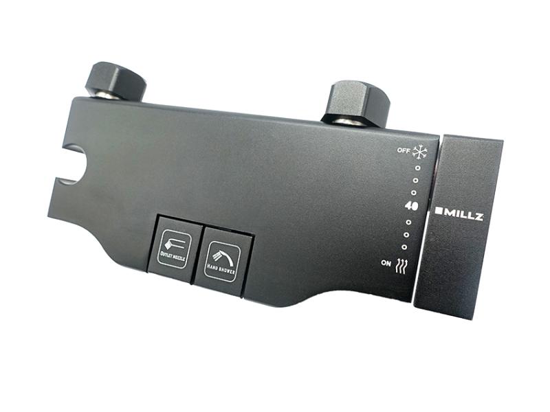 Змішувач для душа бренду MILLZ MRS-AL-E3 Black - це функціональне рішення для сучасної ванної кімнати. Зроблений із високоякісного алюмінію, який є екологічним і придатним навіть для питної води, він має стійке чорне покриття, що надійно захищає від зношування та додає виробу преміального вигляду. Корпус видовженої плоскої форми має дві кнопки з позначками, що супроводжуються характерним звуковим клацанням, забезпечують зручне перемикання між режимами подачі води: на вилив і на лійку. Змішувач також оснащений термостатом. За допомогою позначок та характерних звукових клацань, що супроводжують обертання регулятора, можна швидко та точно налаштувати бажану температуру води та не боятися опіків. З тильної сторони регулятор температури має ребристу поверхню, що запобігає ковзанню навіть тоді, коли руки намилені, забезпечуючи комфортне перемикання. Задвяки термостату, можна безпечно мити навіть немовлят. Вбудований вилив із внутрішнім аератором допомагає економити воду, та у разі забруднення його легко можна почистити або замінити. Прямий силіконовий шланг підключається до квадратної лійки з білими форсунками, потім душ можна повісити на тримач, який вже є на корпусі. Встановлюється змішувач на вертикальну поверхню, що робить монтаж швидким та зручним. У комплекті: корпус, шланг для душу довжиною 1 м 50 см, квадратна лійка, дві декоративні чаші, дві прокладки, два ексцентрики, інструкція та гарантійний талон. Для збереження зовнішнього вигляду корпус упакований у білий мішечок, а весь комплект – у картонну коробку зі штрих-кодом. Габарити упаковки – 28,0*17,6*12,0 см. Гарантійний термін - 4 роки.