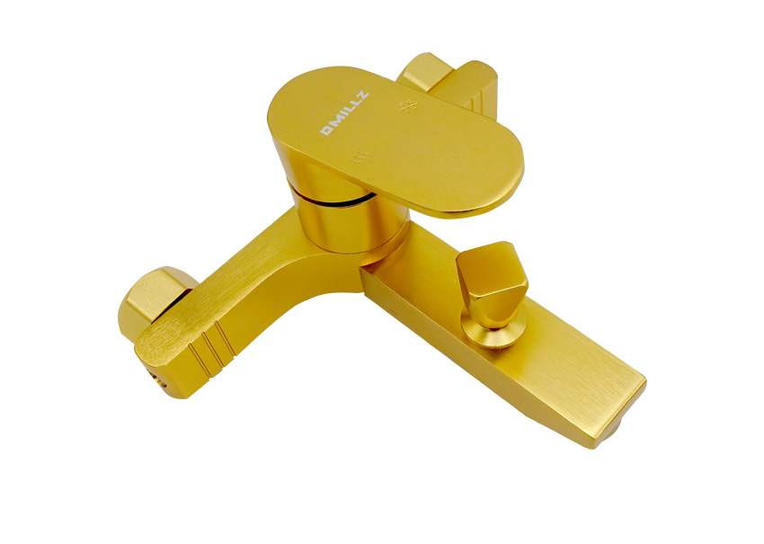 Елегантний золотистий змішувач для ванни від бренду MILLZ — ідеальний вибір для тих, хто цінує функціональність та стиль. Виготовлений із безпечного алюмінію та покритий емаллю кольору «золото», який надає виробу розкішного вигляду та надійно захищає його поверхню від подряпин. Компактний короткий прямокутний гусак оснащений зручним перемикачем для зміни режимів — зі змішувача на душ. Вбудований в носик гусака аератор запобігає розбризкуванню води та знижує її витрату. Верхній важіль плавної прямокутної форми має картриджний механізм. Це забезпечує плавне регулювання напору та температури води. Змішувач з'єднаний з душовою лійкою довгим гофрованим шлангом, що гарантує свободу рухів при прийманні водної процедури. Лицьова частина душової лійки виконана в чорному кольорі, що вигідно підкреслює золотий колір змішувача. Розташовані на лійці білі опуклі форсунки мають масажний ефект. Змішувач із серії «Золото» відповідає найвищим вимогам покупців. Він не вимагає особливого догляду, легко монтується на стіну та при акуратному використанні довго прослужить. Продається в маркованій штрихкодом картонній коробці розміром 28 х 17,5 х 12 см. В комплект входять: змішувач з лійкою для душу, тримач для лійки, 2 кріплення та 2 накладні чаші для змішувача, інструкція з експлуатації та гарантійний талон. Гарантія — 4 роки. Країна-виробник — Китай.