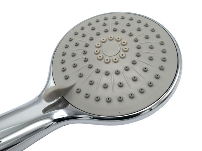Душова лійка поєднує в собі практичність та ергономічність. Хромований корпус має дзеркальний блиск і ідеально поєднується із сірою робочою поверхнею. На ній рівномірно розташовані форсунки: по центру — трохи більше, по колу — менше. Це формує три різні режими подачі води. Вибрати один з них можна за допомогою перемикача на диску. Має стандартні розміри: довжина лійки — 22,5 см, довжина ручки — 12, 5 см, діаметр диска — 10 см.Постачається в картонній коробці розміром 25 х 12 х 4,5 см. На упаковці є штрихкод. Робоча поверхня захищена прозорим пластиком, вихід для різьби — заглушкою. Лійка додатково упакована в пупирчасту плівку, що не допускає появи подряпин під час транспортування. Гарантія — 2 роки. Країна-виробник — Китай.